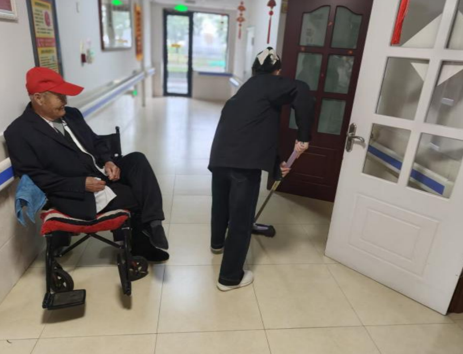 清晨细雨绵绵,志愿者们仍准时集结,满怀热情地抵达养老院。大家迅速投入劳动,认真清扫楼道与休息室,手持扫帚、拖把,细致地为老人们营造一个整洁舒适的生活环境。