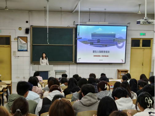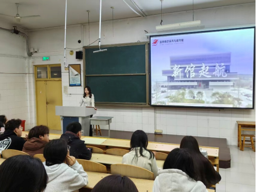 郭老师分别从我校新图书馆的馆藏规模、空间布局、数字资源等方面展开介绍,说明了新图书馆是集“藏书、阅读、研讨、数字体验”于一体的智慧化学习空间。老师通过视频播放、PPT演示等方式详细介绍了功能区域的位置与使用规则,通过案例强调了图书馆作为公共学习空间的文明规范,帮助新生建立良好的借阅与使用习惯。