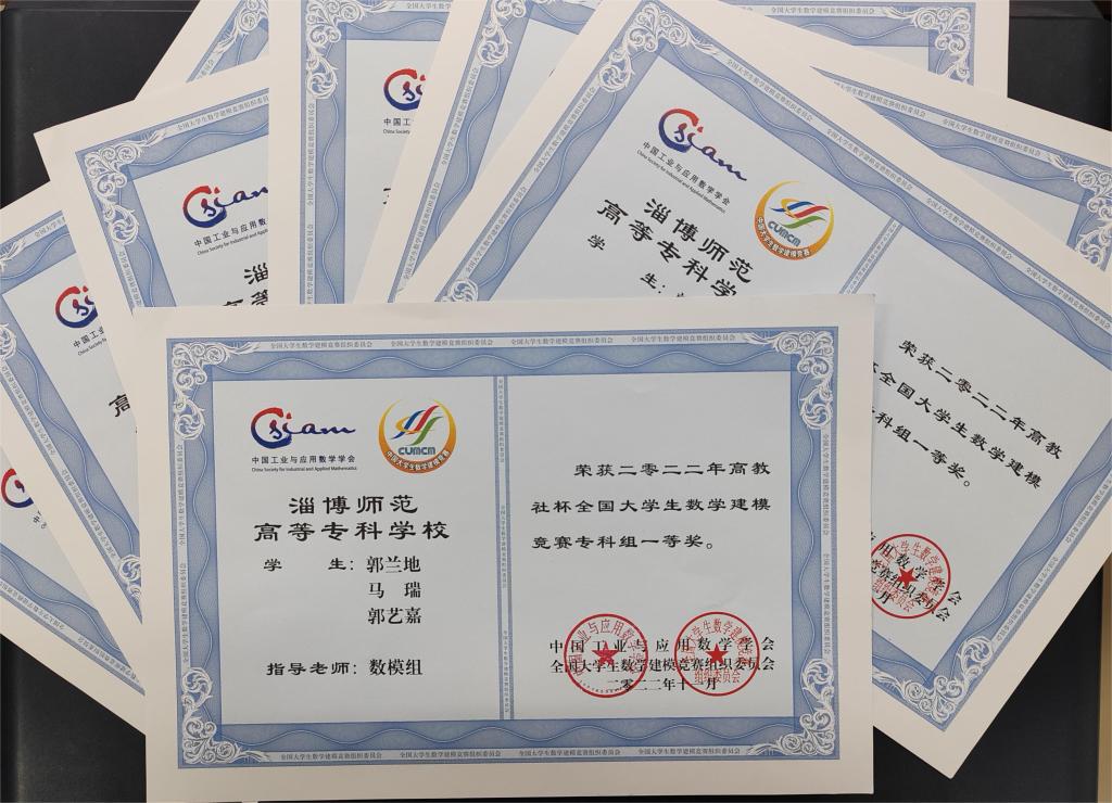成绩的取得凝聚了全系师生的辛勤与汗水。自2006年开始,数理系坚持组织学生日常进行数学建模训练并参加全国大学生数学建模竞赛。学校、系领导特别重视该项活动的组织与开展。一方面重视辅导队伍建设。数理系成立数学建摸指导组,派出张明成、沙旭东、王恒、郭家锋等教师参加数学建模培训与交流,组织学生系统地学习数学建模知识,定期开展专门的讲座和实践活动,激发学生参与建模探索的兴趣。另一方面不断增加投入,完成一系列教学质量工程建设。淄博师专数理系坚持推进学科建设和教学改革,实现数学教学成果的持续涌现,先后建成6门省级精品课程,2门省级精品资源共享课;立项省级教改项目3项,完成2项;数学教育专业教学团队为省级优秀教学团队;获得省级教学成果二等奖一项。通过教学质量工程建设,实现了从“数学好难”到“数学好玩”的跨越,学生的学习兴趣大幅提高。