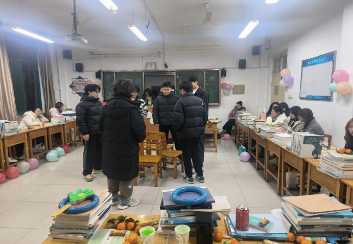 各班的晚会由同学们自行策划、组织,充满了创意与活力。晚会前,各班精心布置了教室,营造出浓浓的节日氛围。