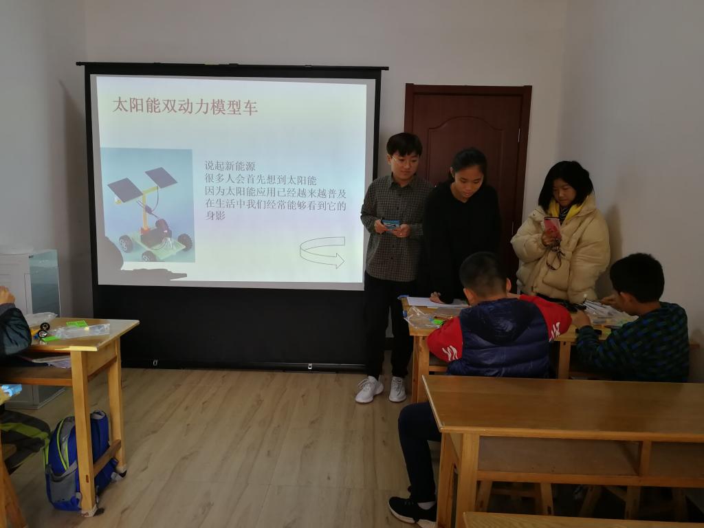 本次主题科学实验采用“科技知识传递+实验模型制作”的形式。以制作“太阳能双动力模型车”为主题的太阳能模型实验。志愿者通过太阳能路灯,太阳能热水器等实例引起社区孩子们的兴趣,详细介绍了作为太阳能汽车的动力装置的太阳能电池。社区孩子们都积极主动的参与到实验模型的制作中。通过实验原理的阐述,让社区孩子们能够清楚的讲出太阳能的应用;通过让社区孩子们动手实验,培养他们的细致耐心的品质和动手操作能力,熟练操作太阳能模型汽车的安装;通过丰富多彩的科技知识传授,使孩子们感受到科学的魅力。活动过程氛围融洽,配合默契,每个人都有条不紊地进行着自己承担的模型制作。