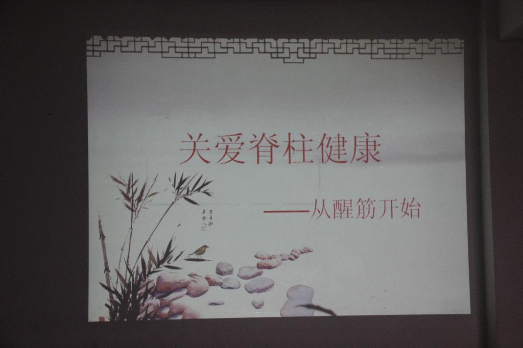 讲座主要围绕怎样保护脊柱健康以及怎样从醒筋开始等一系列问题展开讲解。身体的脊柱就像一棵大树的主干支撑着我们,也主导着生命的健康。然而,近年来脊柱病高发,年轻化的趋势,让越来越多的人饱受困扰。为了解决这些问题,通过学习 “醒筋道——九式”养生操,增加肌肉对脊柱的支撑作用从而对脊柱起到了保护作用。
