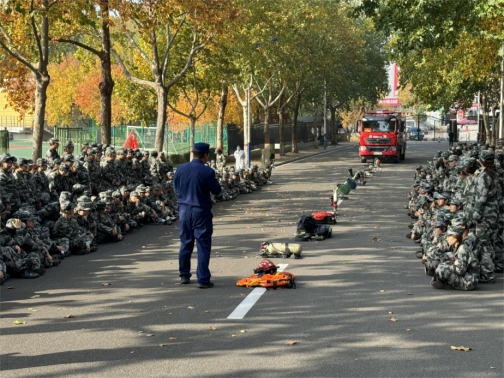 数理系2025级新生参加学校军训拉练与消防演练活动